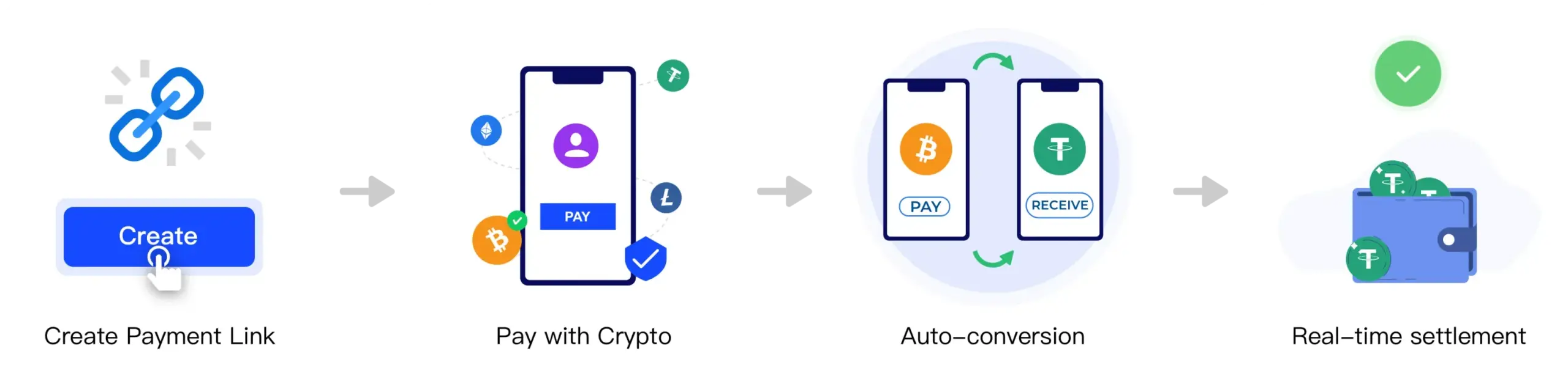 Pay and get paid with crypto.