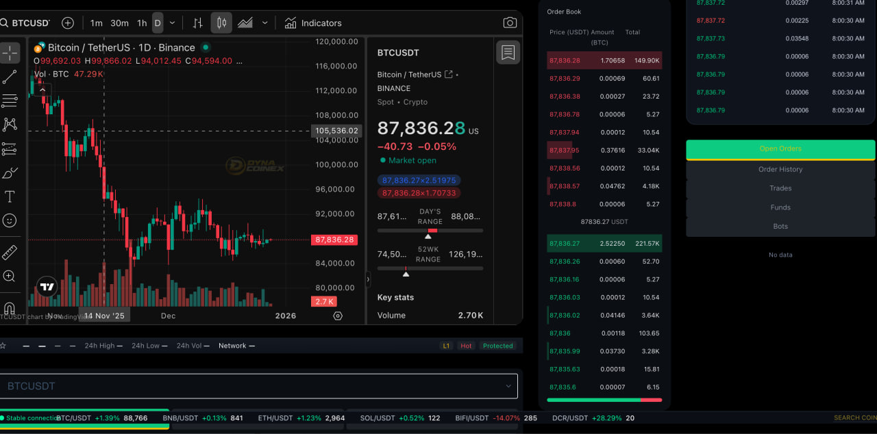 DynacoinEx is a digital asset trading platform built for performance, transparency, and security. Traders benefit from competitive fees, deep liquidity, advanced charting tools, and a streamlined interface designed for both beginners and experienced users.