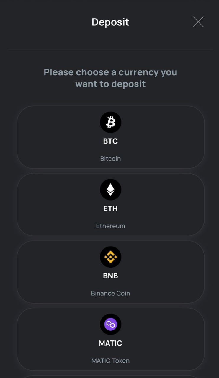 - Deposit crypto to your wallet